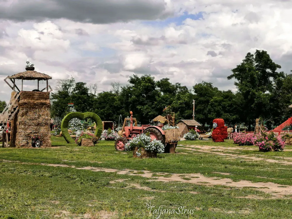 Она широко прославилась своим соломенным парком, который ежегодно пополняется новыми любопытными инсталляциями