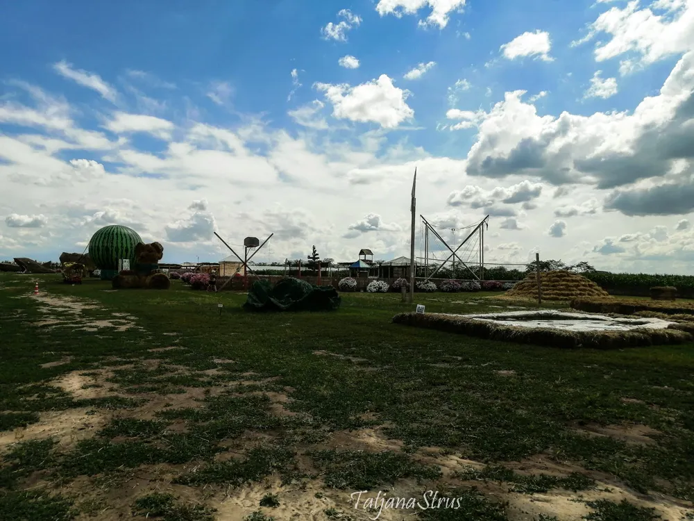 В самом центре Ставропольского края, среди полей пшеницы и кукурузы, разместилась одна из самых популярных агроточек региона — бахча Пономарёвых. В этом месте не только выращивают и продают арбузы: здесь создан парк развлечений с соломенными фигурами, аттракционами и арт-объектами.