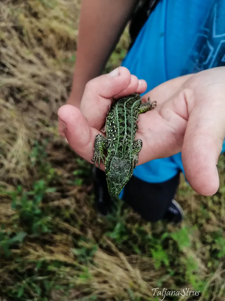 Среди маков юркает множество прытких ящериц. Одну из них нам поймал один из жителей города. Ящерица не пострадала.