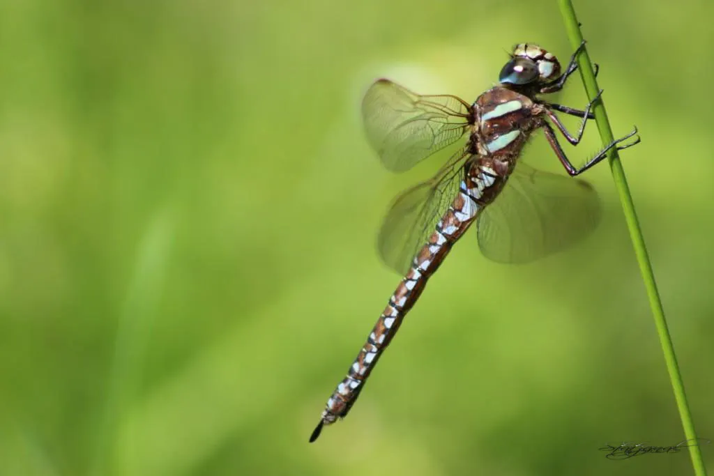 Коромысло большое (Aeschna grandis), семейство Коромысла (Aeschnidae). Обитатель стоячих вод, но переносящий слабую проточность. Имаго питаются различными летающими насекомыми, но основой их корма являются двукрылые. Имаго встречен 01.07.2020.