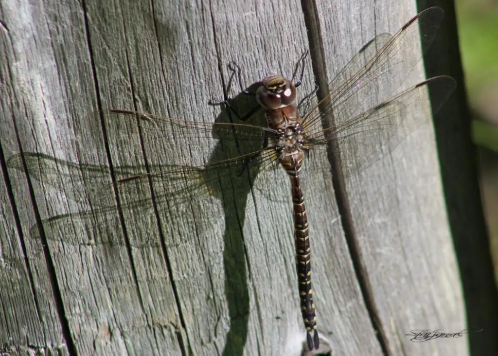 Чаще других стрекоз можно видеть большую стрекозу — коромысло субарктическое. Такие стрекозы долго летают и обычно садятся отдохнуть на стволе дерева, тротуаре, ограждениях. Встречена 01.07. 2020.
