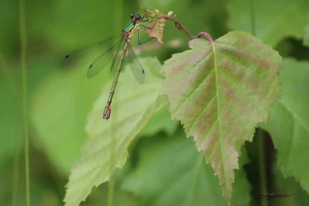 Лютка-дриада (Lestes dryas) вид стрекоз рода Lestes из семейства Лютки (Lestidae). Вид включен в Международную Красную книгу МСОП. Присаживаясь на растения, они распластывают крылья в стороны и смещают их назад, так что крылья располагаются под углом к телу. В то время как стрелки в покое крылья складывают вдоль брюшка. Встречена 29.06.2020.