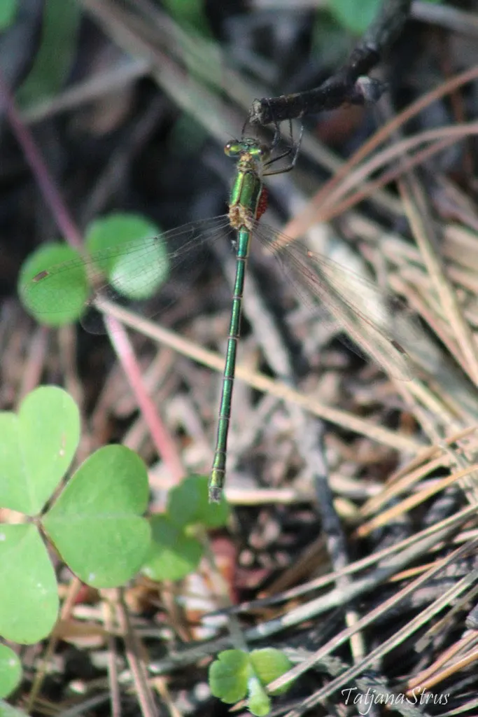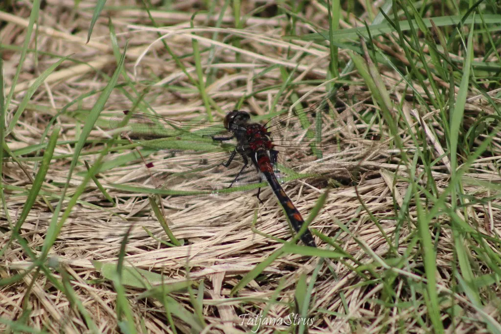 Стрекоза красная встречена в мае на заболоченном участке леса.