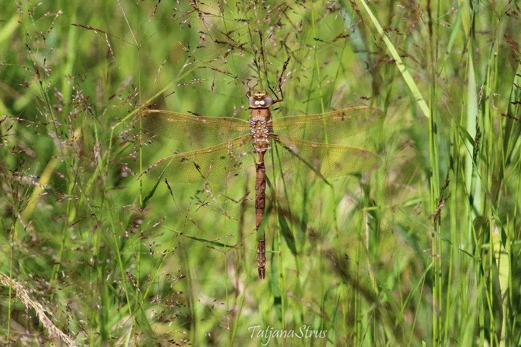 Коромысло камышовое — одна из самых крупных видов стрекоз. Обитает на открытых пространствах вдоль ручьев и увлажнённых тропинок. В городских лесах эти стрекозы отдыхают на нагретых солнцем деревянных тротуарах и ограждениях троп. Все фотографии коромысел камышовых сняты в течение только одного месяца — июня.
