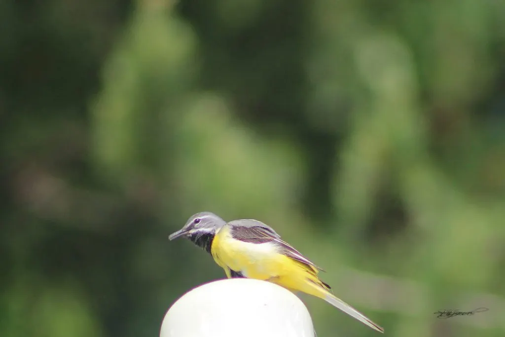Горная трясогузка размером с воробья. Спина серая, надхвостье зеленовато- желтое, горло черное. У самки горло белое. Селятся вблизи рек и ручьев. В городских лесах пара поселилась в районе Санаторского ручья.