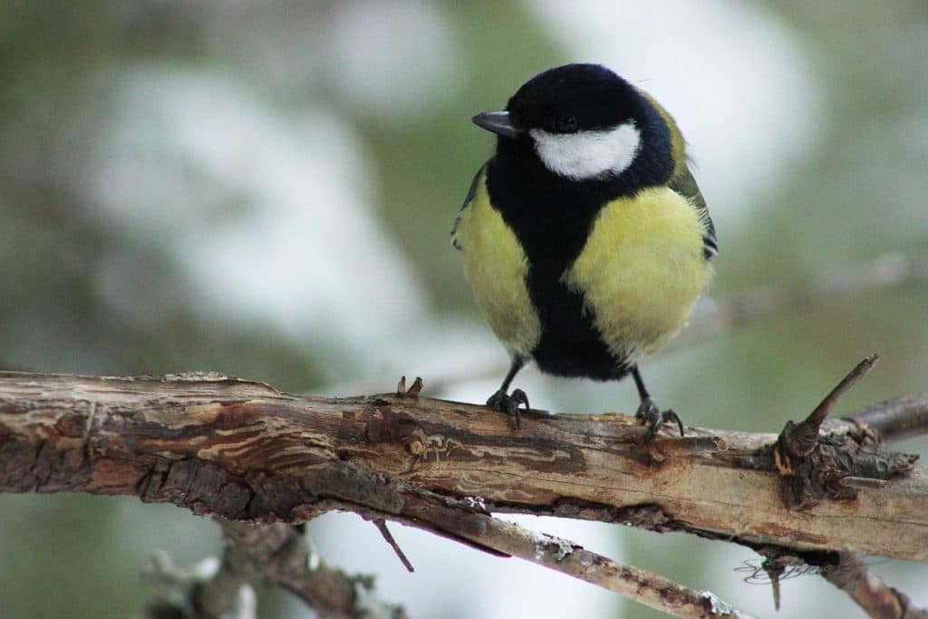 Большие синицы — самые заметные из всех синиц, легко узнаваемы по желтой грудке с продольной черной полосой, ярко-белые, окаймлённые черным, щеки.
