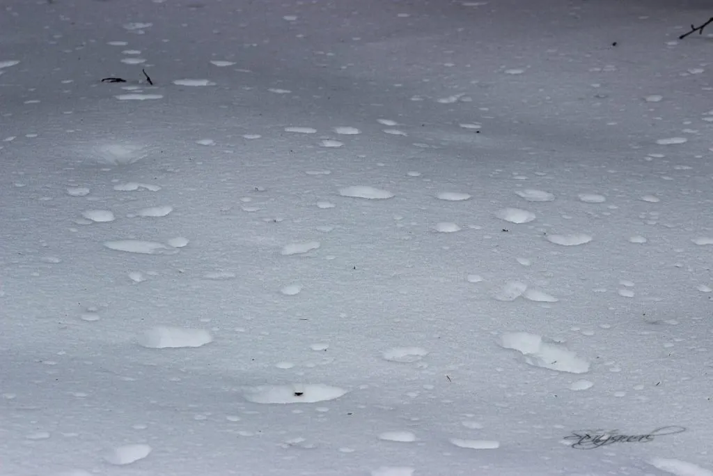 На поверхности снега остаются впадины, похожие на лунные кратеры.