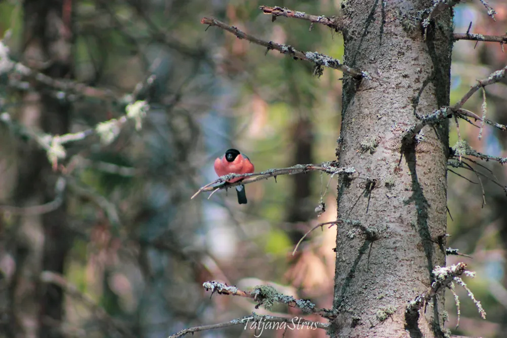 В отдалении так и сидели пухляки и снегири и, перелетая с место на место, ждали окончания пира дятла.