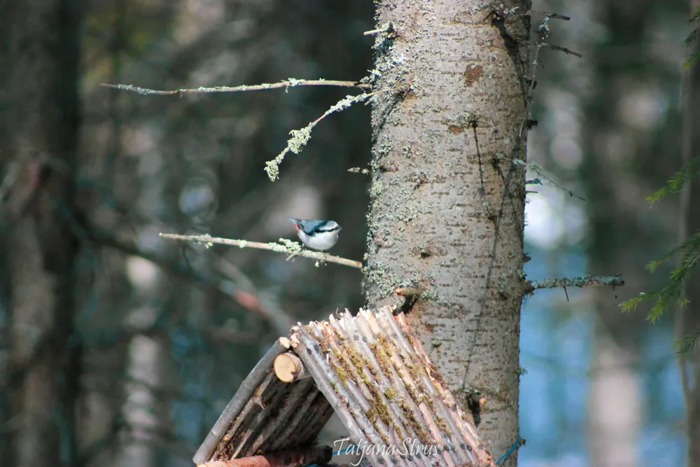 Возле кормушек, установленных в лесу в часто посещаемых людьми местах, сейчас осталось мало птиц, либо совсем не увидите. Пришла пора гнезда вить, семьи создавать подальше от суеты, в тихих укромных участках. Но в отдалении от окраин города, на лесной территории птицы так же посещают кормушки, хотя и в меньшем количестве.