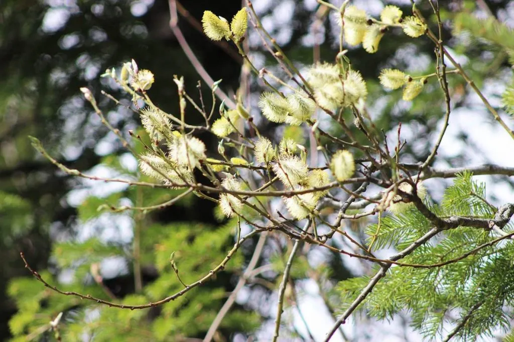 С каждым днём весна добавляет зелёные краски лесу. Лес уже не серый, а зеленоватый за счёт распускающихся листовых и цветочных почек.