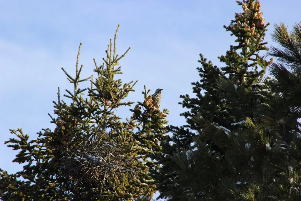 Семена сосны кедровой сибирской надёжно спрятаны под слоем снега и будут обнаружены животными в зимнюю бескормицу.