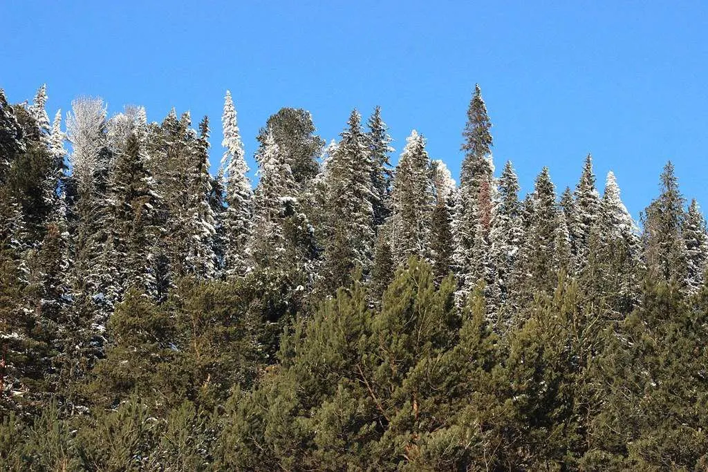 Из общего ландшафта можно сразу заметить и выделить крону ели и сосны сибирской кедровой. Крона ели имеет форму правильного узкого конуса. Верхушка ели всегда острая, она никогда не притупляется. Крона сосны сибирской кедровой раскидистая, многовершинная.