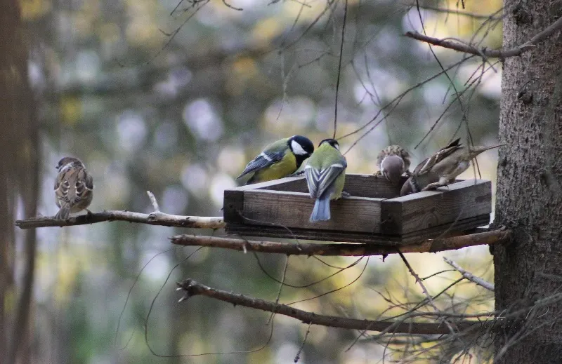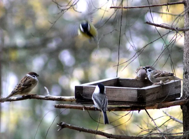 Зима ещё не наступила, но возле кормушки, с насыпанными семенами подсолнечника, было оживление. Сюда слетелись, вероятно, все виды птиц, обитающие в это время в городских лесах.