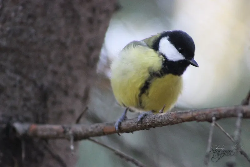Поползень, один из постоянных обитателей зимних кормушек, неустанно юркает к кормушке, хватаем корм, прячет его в расщелинах деревьев и, тут же, летит за новой порцией. Быстрая и бесстрашная птица. Но самой храброй оказалась одна из больших синиц.