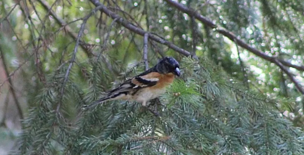 В зарослях хвойных веток то и дело мелькала небольшая птичка, размером с воробья. Она постоянно перемещалась, исчезала, появлялась и проследить за её перемещениями стоило большого труда.