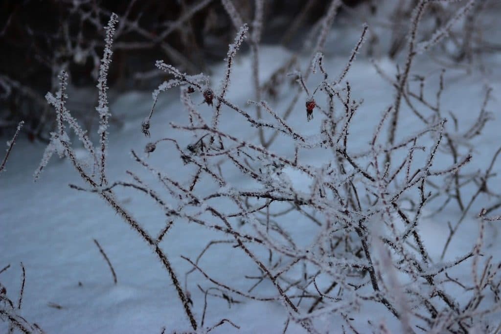 Разрушить изморозь на растениях могут ветер, осадки, тепло.