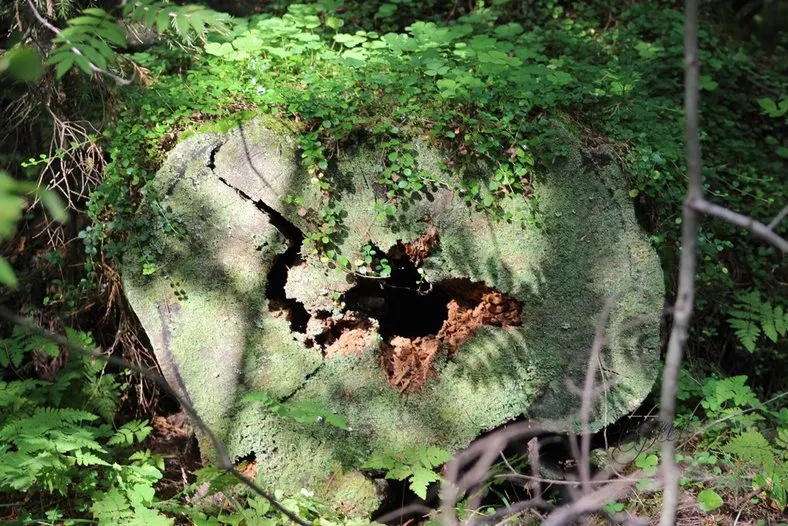 Спиленный ствол дерева с открытой сердцевиной, даёт приют всем страждущим и нуждающимся в укрытии. Свисающие с высоты ствола побеги линнеи, вечнозелёного кустарничка, придали завершающие шрихи картине, навели на сравнение прядей спадающих волос с головы. На вершине ствола растёт крупная, ярко-зелёная кислица, нашедная здесь благоприятные условия для жизни. Пни — неустойчивая экосистема, достаточно небольших разрушений и его, как экосистемы, не будет.