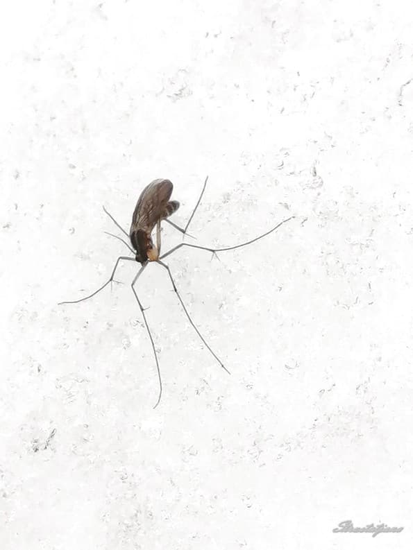 Зимние комары передвигаются низкими короткими перелетами на снегу, парами и единично. Заметить крошечных комариков на снегу сложно в силу их небольших размеров.