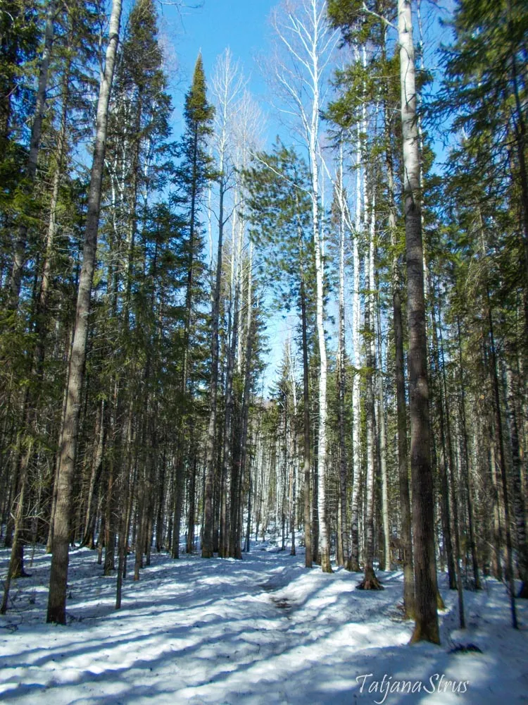Пение первых зябликов услышала на окраине городских лесов, солнечной стороне, где-то на верхушках деревьев, но чтобы их увидеть нужно было остановится и неподвижно постоять.
